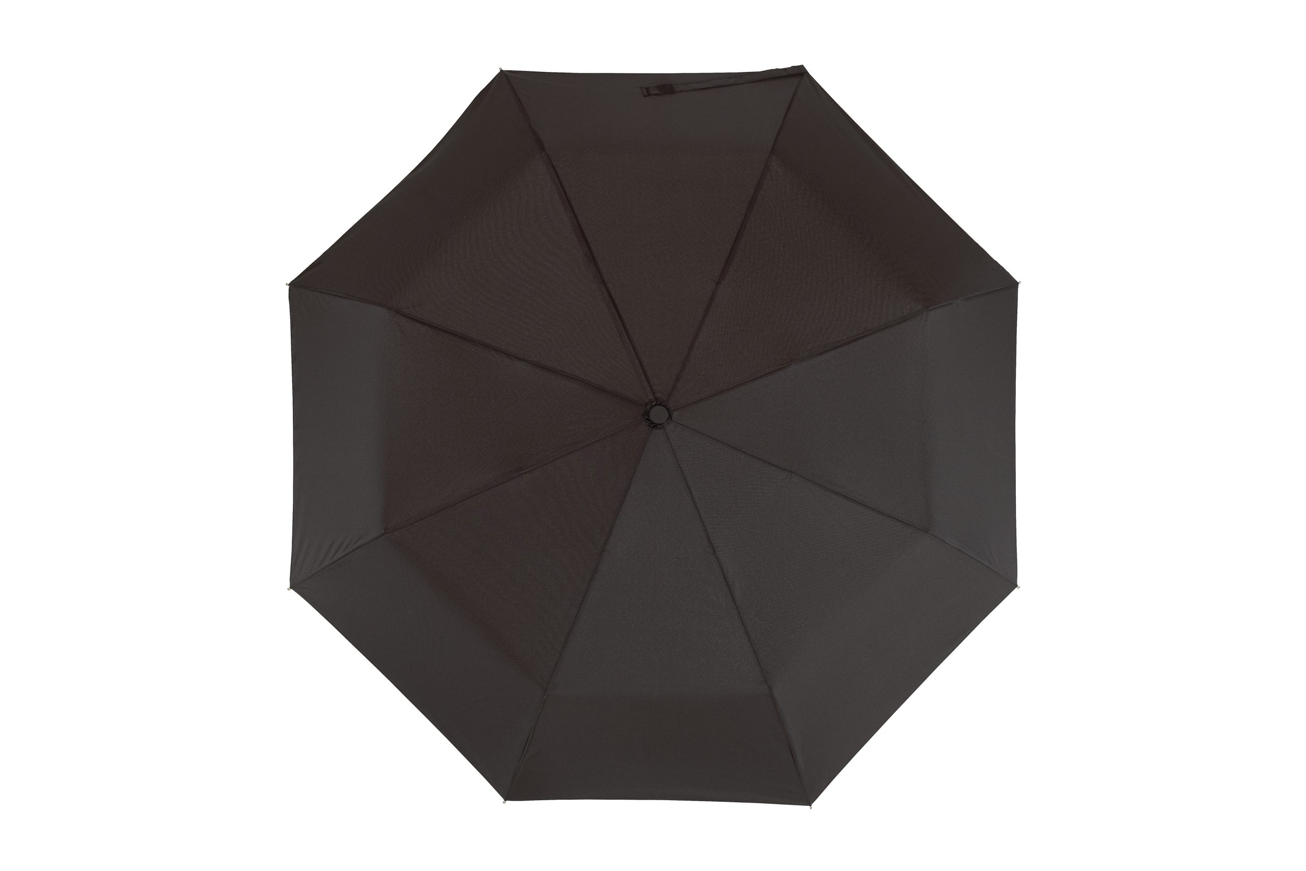 Ø 98 cm. 8 gajos. Ancho gajo 37 cm. Largo cerrado 28,5 cm. Largo abierto 55,5 cm. Poliéster, metal y plástico engomado. Paraguas APERTURA Y CIERRE AUTOMÁTICO. Eje y varillas metálicas. Mango de plástico engomado con correa cordón color negro. Botón a presión. Cubierta y funda en poliéster-pongee con revestimiento especial hidrófugo. Cierre con correa de velcro.